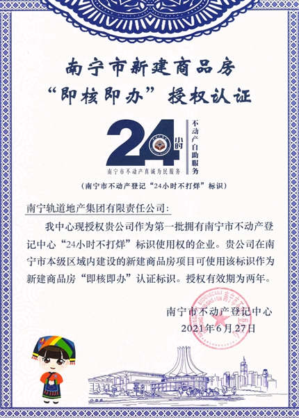 • 公司獲得南寧市新建商品房“即核即辦”授權(quán)認證