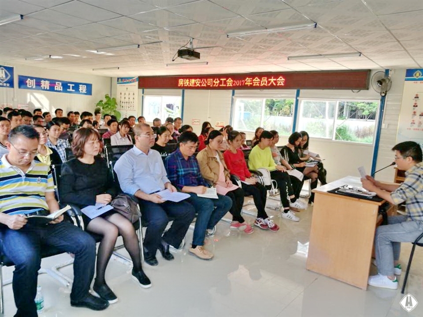 11月3日下午,房鐵建安公司在翡翠園B組團(tuán)項(xiàng)目部會(huì)議室召開分工會(huì)2017年會(huì)員大會(huì),大會(huì)由房鐵建安公司黨支部書記馬為孺主持,中房置業(yè)公司工會(huì)副主席李敏、房鐵建安公司領(lǐng)導(dǎo)班子成員以及分工會(huì)會(huì)員共78人參加大會(huì)。