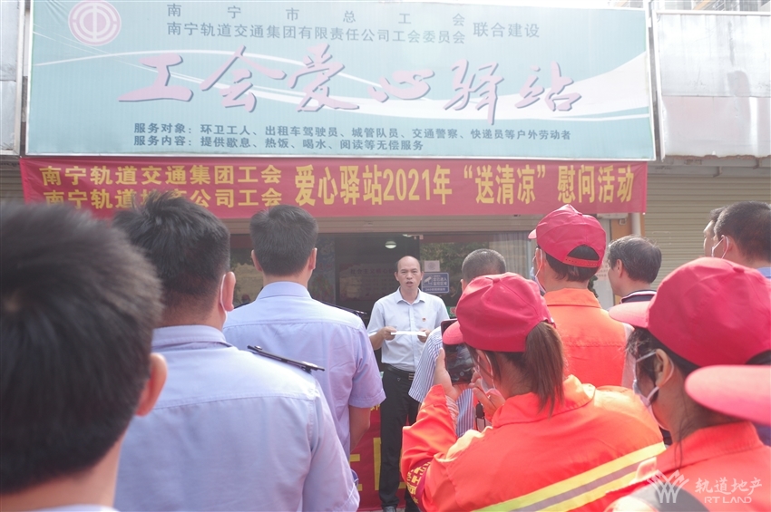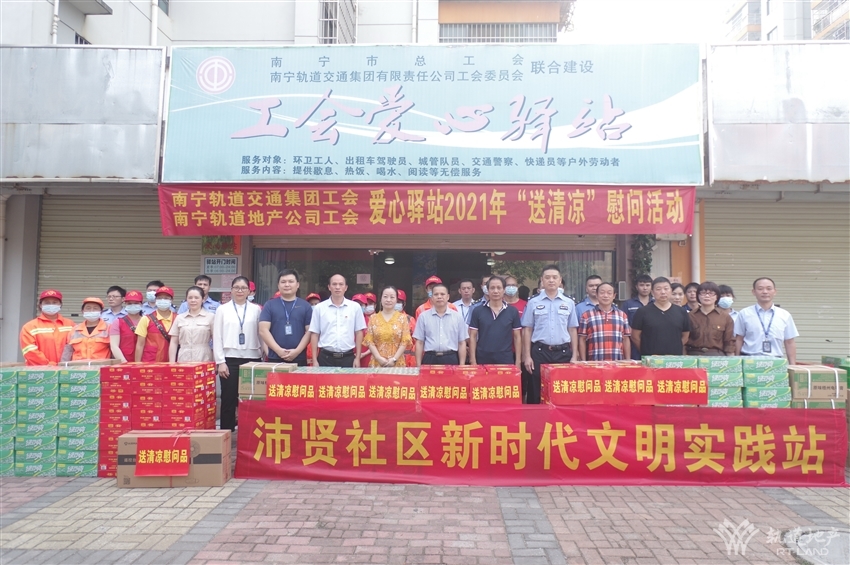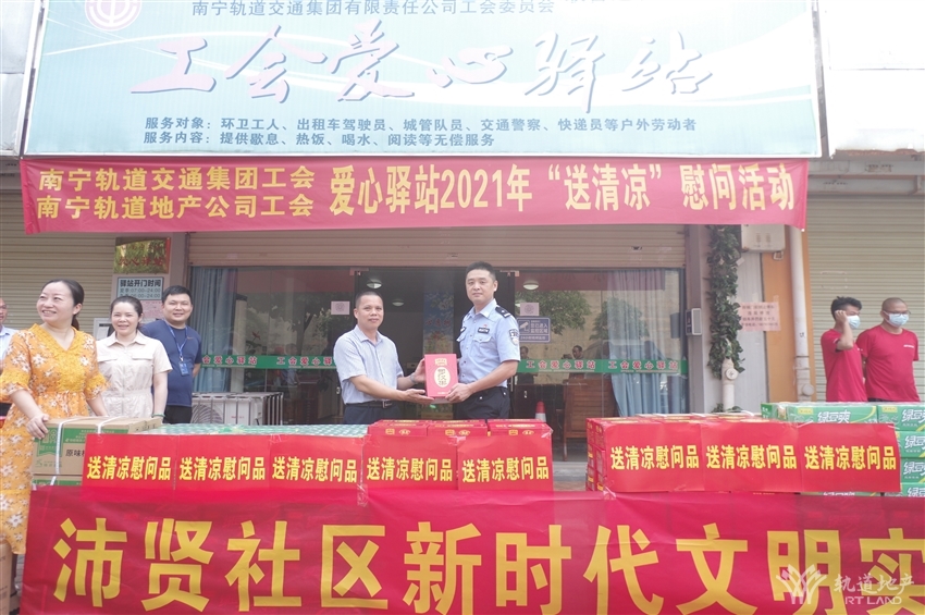 近日,持續(xù)高溫天氣給堅守一線的戶外工作者帶來嚴(yán)峻“烤”驗,為積極推進“我為群眾辦實事”實踐活動走深走實,910日上午,由南寧軌道交通集團工會、南寧軌道地產(chǎn)集團工會牽頭,攜同南寧軌道城市發(fā)展公司工會、軌道地產(chǎn)物業(yè)公司工會及那洪街道黨工委、沛賢社區(qū)在金凱路沛友巷工會愛心驛站組織開展“送清涼”慰問活動,南寧市總工會技協(xié)辦副主任阮杰,經(jīng)開區(qū)工會工委副主任易蘭新,交警十大隊教導(dǎo)員駱明等同志出席活動。