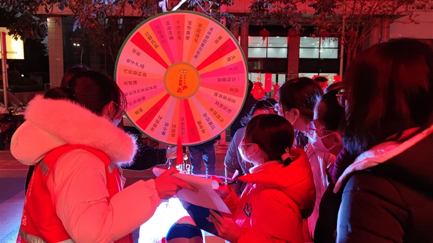 紅火的燈籠掛在枝頭,濃濃的年味已在廣場上蔓延,燈籠上懸掛有節(jié)日燈謎以及黨的二十大知識、民族團(tuán)結(jié)知識、廉潔知識、垃圾分類知識、安全生產(chǎn)知識的題目。大家三五成群看謎面、猜謎語,沉浸在猜謎解謎的樂趣中。這種寓教于樂的方式,充分調(diào)動了大家學(xué)習(xí)的興趣,大大提高了黨員教育的實際成效。