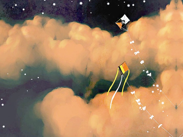 小囡囡就這么仰望著那個(gè)高掛在天上的風(fēng)箏,她也不去追,不去搶。因?yàn)榭粗L(fēng)箏還在天上,心里就還有夢。如果把它拿在手上,可能,她就再也不會做夢了?! ?