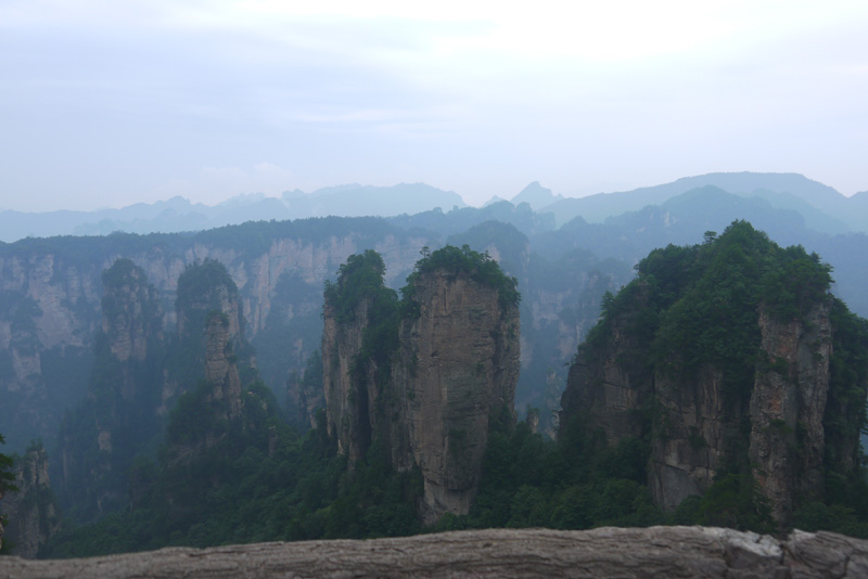 我們的第二站:袁家界。在這里,我感受到了一個(gè)現(xiàn)代高科技帶來(lái)的震撼。站在高度300多米的百龍?zhí)焯莸耐该飨潴w里,隨著天梯的緩緩上升,我們就像鳥兒一樣穿出山體,劈開云霧,沖天而起,一種從未有過(guò)的刺激感引得我們聲聲尖叫。到達(dá)山頂,一排排石巖赫然展現(xiàn)在我們眼前,高低錯(cuò)落,森然有序,儼然列隊(duì)的將士,聽導(dǎo)游說(shuō),這便是48將軍巖,真是“壯如其名”。