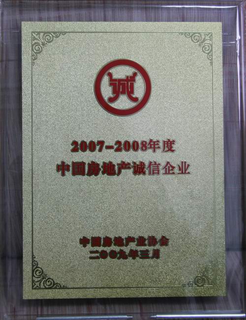 熱烈祝賀中房集團(tuán)南寧房地產(chǎn)開發(fā)公司榮獲2007-2008年度中國房地產(chǎn)誠信企業(yè)