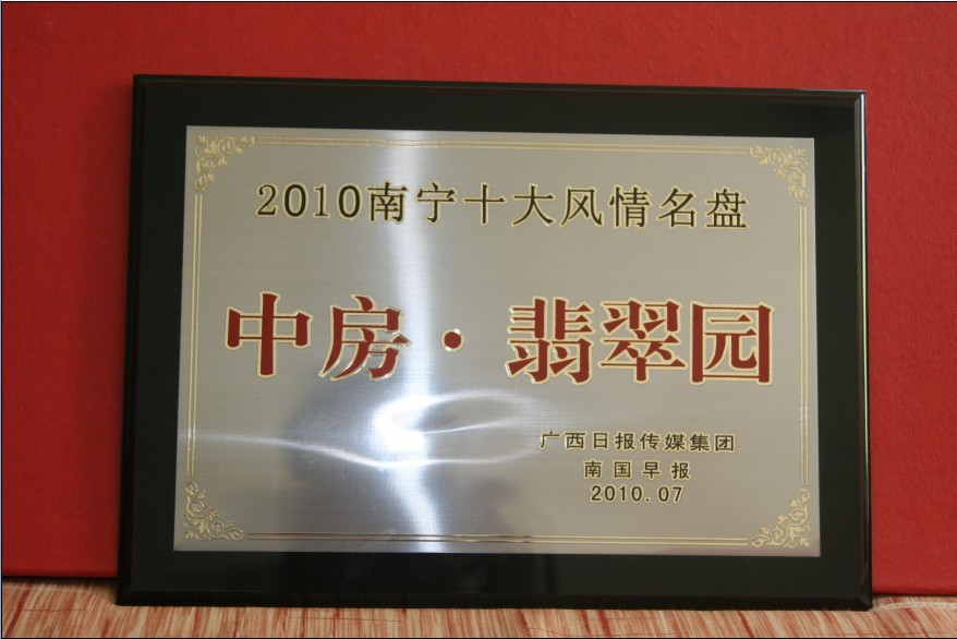 熱烈祝賀中房·翡翠園榮獲“2010南寧十大風情名盤”稱號